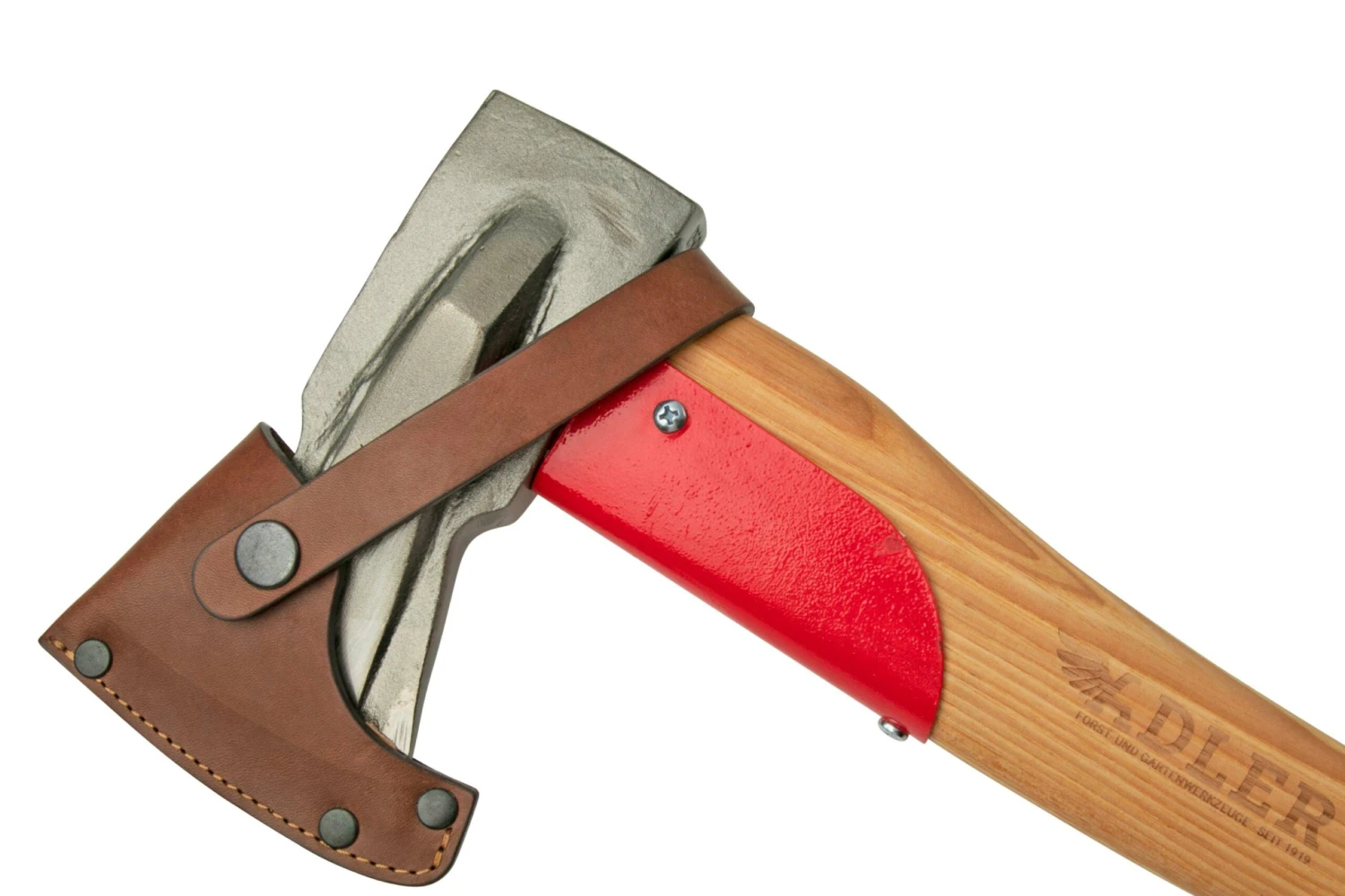 L’Adler Short Splitter est une solide hache merlin très puissante. Le manche est un peu plus court que celui de la Adler Long Splitter, rouge-noir, hache. La lourde tête avec large coin permet de mieux fendre le bois. Cette hache a été entièrement fabriquée en Allemagne. Elle est livrée avec un étui de rangement en cuir.