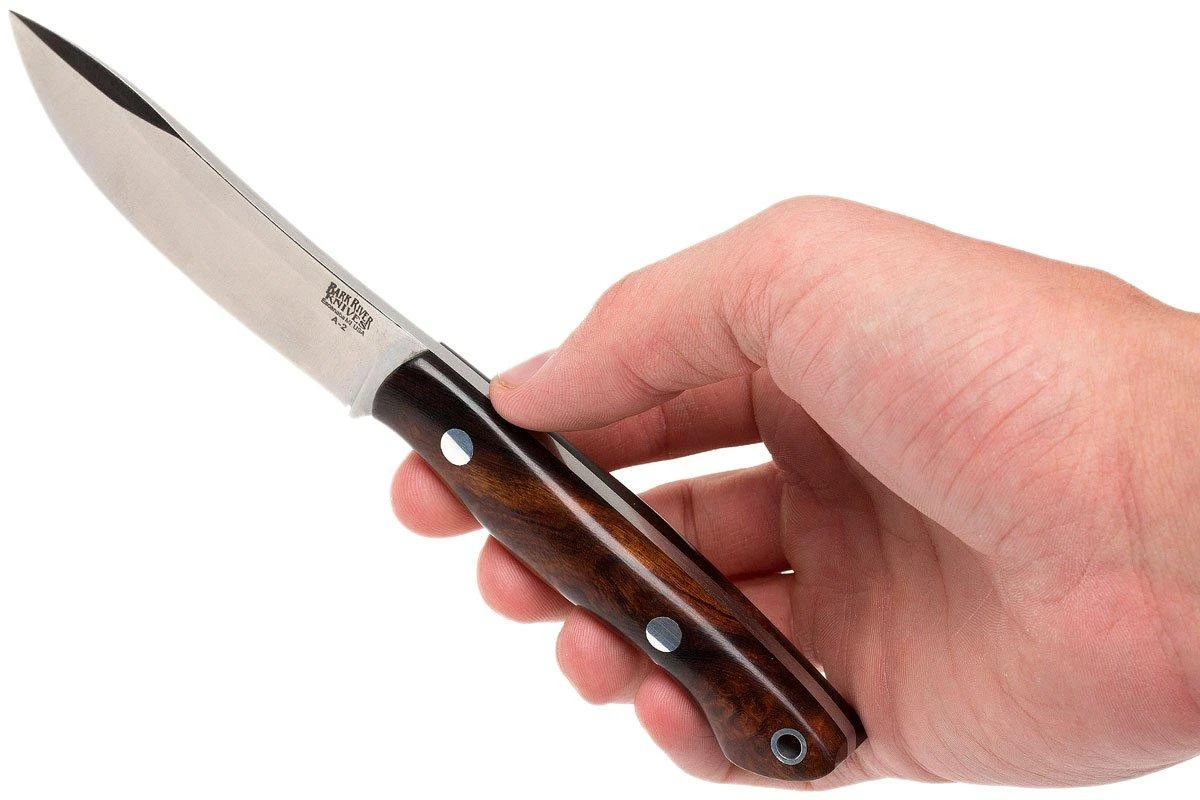 Le Bark River Mini Kalahari est un magnifique couteau de chasse, conçu pour le petit et moyen gibier. C’est une version plus petite du gros Kalahari Hunter. Le manche est bien ergonomique et convient bien à une utilisation prolongée. La lame est dotée d’un gros « ventre ». Idéal pour le dépeçage : on évite ainsi de percer les organes par accident. Ce couteau arbore un faux tranchant au dos de la pointe, un swedge. La forme de lame rappelle ainsi une clippoint classique. Le Mini Kalahari est un couteau qui aura sa place dans chaque partie de chasse.