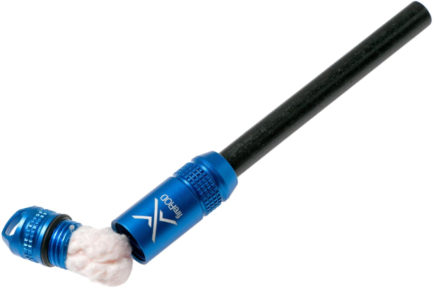 Le Benchmade Exotac FireROD XL est une pierre à feu extra large. La tige en magnésium produit des étincelles de 3 000 degrés Celsius qui durent particulièrement longtemps en raison de l’ajout de ferrocérium. Des joints toriques protègent les pièces dévissables de l’humidité et des autres influences. La tige peut aussi être remplacées, si nécessaire. Le boîtier dans lequel on visse la tige est en aluminium anodisé. Le manche sert également de récipient pour amadou. Un morceau de laine hautement inflammable est livré dans le support.