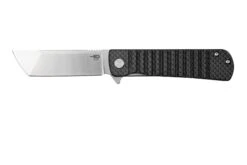 Le Bestech Titan BL04A est un couteau de poche très lĂ©ger grâce Ă des plaquettes de manche en fibre de carbone. Il ne pèse que 67 grammes ! Ce couteau de poche est assez Ă©troit, et on le remarque Ă peine une fois rangĂ© dans la poche. La lame est en acier 154CM et s’ouvre grâce Ă un flipper. Une fois ouverte, elle est verrouillĂ©e par un linerlock, vos doigts sont ainsi en sĂ©curitĂ©. Le clip en titane permet au couteau de rester bien en place dans votre poche.