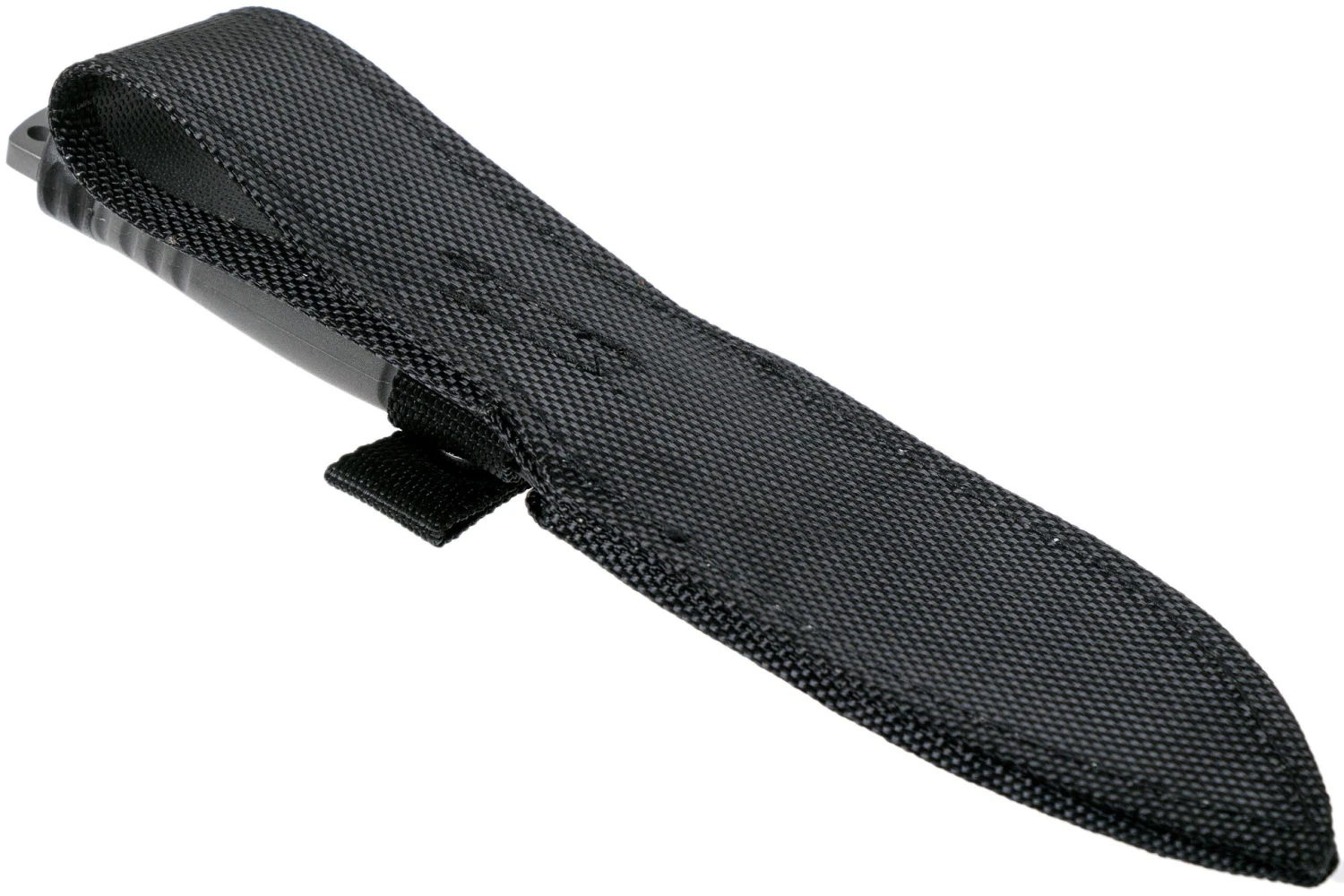 Le Böker Plus Outdoorsman 02BO004 est un couteau à ;ame fixe fixe très économique pour une utilisation outdoor. Le manche en caoutchouc est confortable et offre une prise suffisante. Sous la couche de caoutchouc se trouve un solide noyau en plastique pour une sensation de solidité. La lame est en acier Sandvik 12C27. Un acier suédois résistant à la corrosion qui conserve bien son tranchant et qui est également facile à aiguiser. La lame full tang ressort à l’extrémité du manche. Cette pièce peut être utilisée comme marteau improvisé.