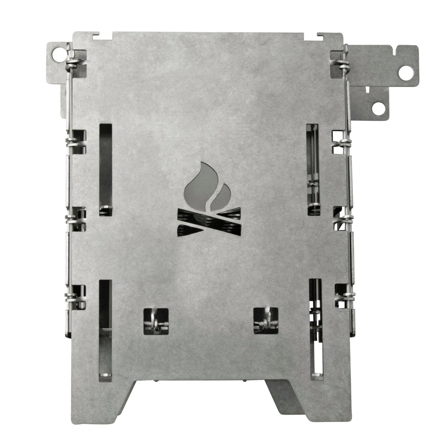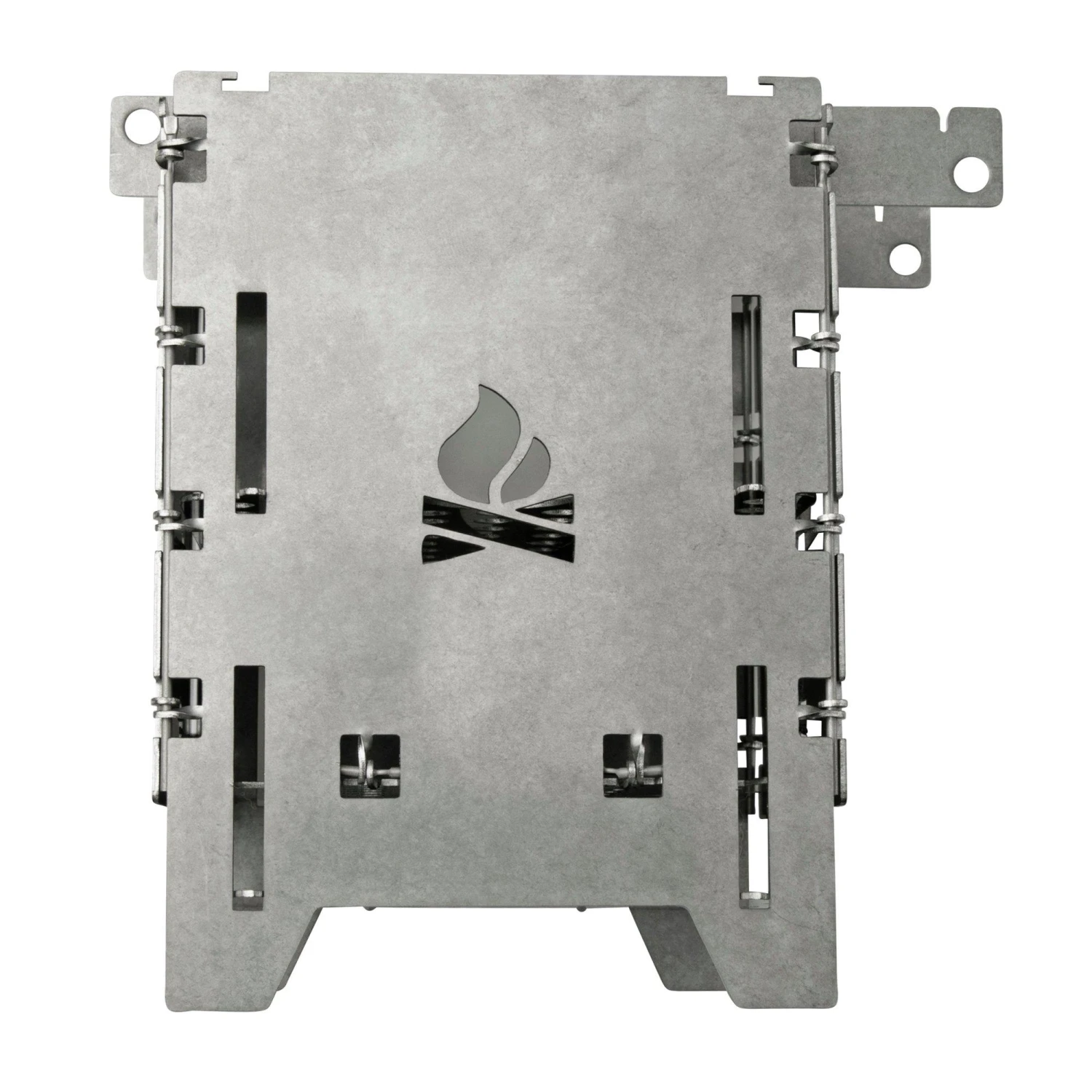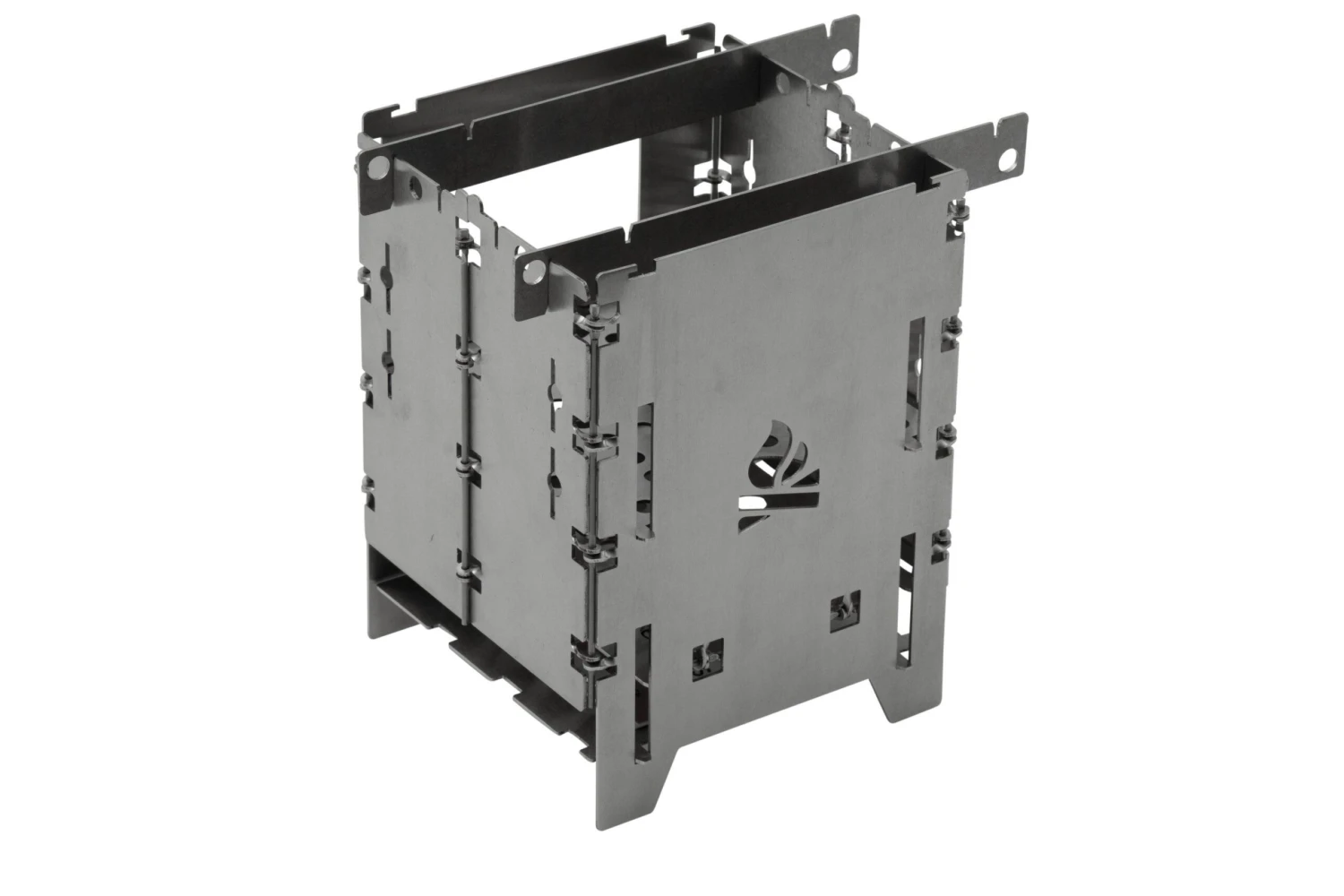 Le Bushcraft Essentials Bushbox LF Set est un kit complet avec un réchaud, une grille de cuisson et un solide sac de rangement. L’avantage de ce réchaud, c’est qu’il est très facile à monter. Il suffit de le déplier ! En 10 secondes seulement, le réchaud est monté et vous pouvez vous attaquer au feu. Pour cuisiner, il ne vous faudra que très peu de matériau inflammable, car l’entrée d’air est très efficace. Et ce, tout en protégeant correctement le feu du vent sur les côtés. Ce Bushbox fonctionne avec des branches ou de la biomasse, mais on peut aussi l’utiliser avec un brûleur à alcool (par exemple Trangia), des blocs Esbit, du charbon, etc.