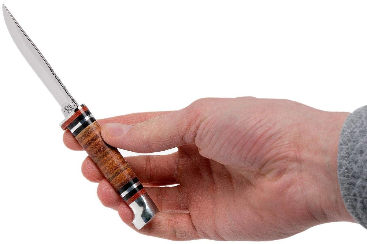 Le Case Hunter Leather est un petit couteau conçu pour la chasse. Grâce à sa petite longueur et à sa pointe pointue, il est parfait pour le petit gibier. Au bout du manche, vous trouverez un beau pommeau en aluminium.