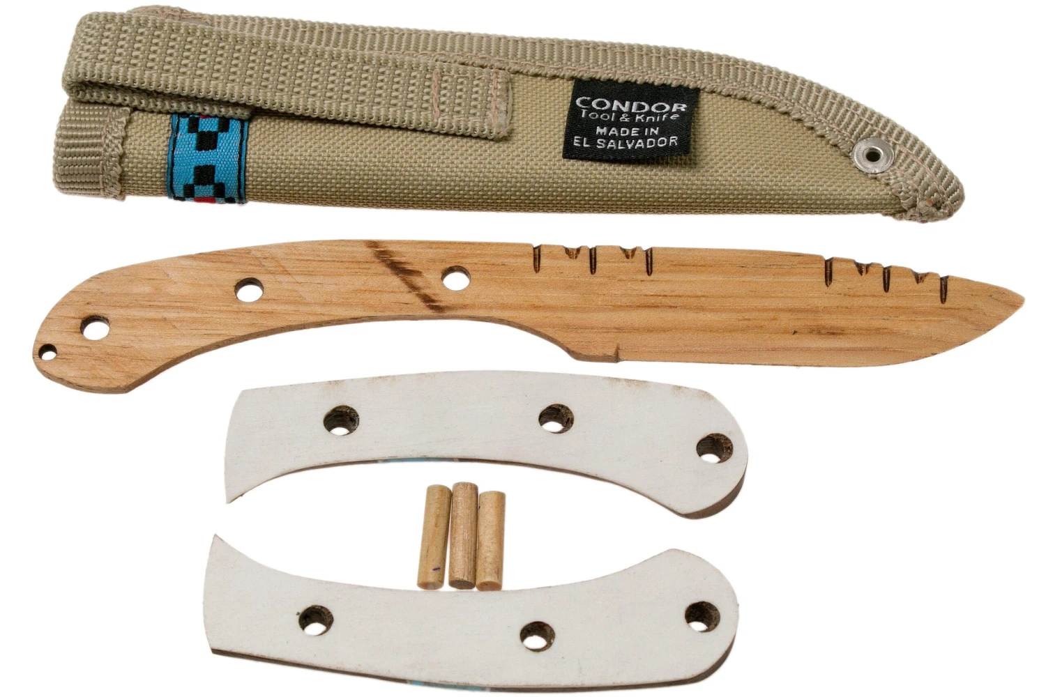 Le Condor Blue River Wooden Knife Kit 2829-3.5HC est un kit pour construire un couteau avec une lame en bois. Un projet sympa pour les enfants/jeunes, pour les initier au monde de la coutellerie. C’est un peu comme faire une maquette. Il suffit d’un tube de colle à bois pour assembler tous les éléments.