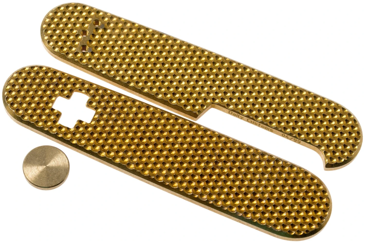 Ces plaquettes Daily Customs 91.3 Golfball BS Pattern, Brass P10012431 Victorinox sont conçues pour les couteaux de poche Victorinox dont la longueur fermĂ©e est de 91 mm. Avec ces cĂ´tes, on vient apporter un peu de pep’s Ă ses classiques suisses.