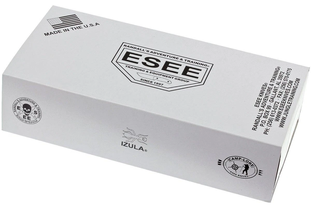 L’ESEE Izula est nommé d’après une fourmi agressive de la jungle péruvienne. Malgré ses dimensions limitées, ce couteau ne doit donc pas être sous-estimé. L’ESEE Izula est un couteau à lame fixe polyvalent. Il trouve facilement sa place dans un sac ou une poche ou est à porter comme couteau de cou. Malgré ses petites dimensions, il se tient très bien en main. Le dos a une large ouverture où votre petit doigt se glisse pour une adhérence optimale. Bien sûr, vous pouvez lui ajouter une poignée de paracord pour obtenir une meilleure adhérence. Et si vous préférez de ‘vraies’ poignées, ESEE Knives les livrent également sous forme d’accessoire. Bien sûr, cela rend le couteau un peu plus épais.