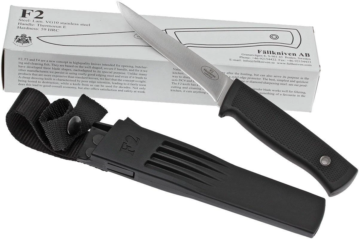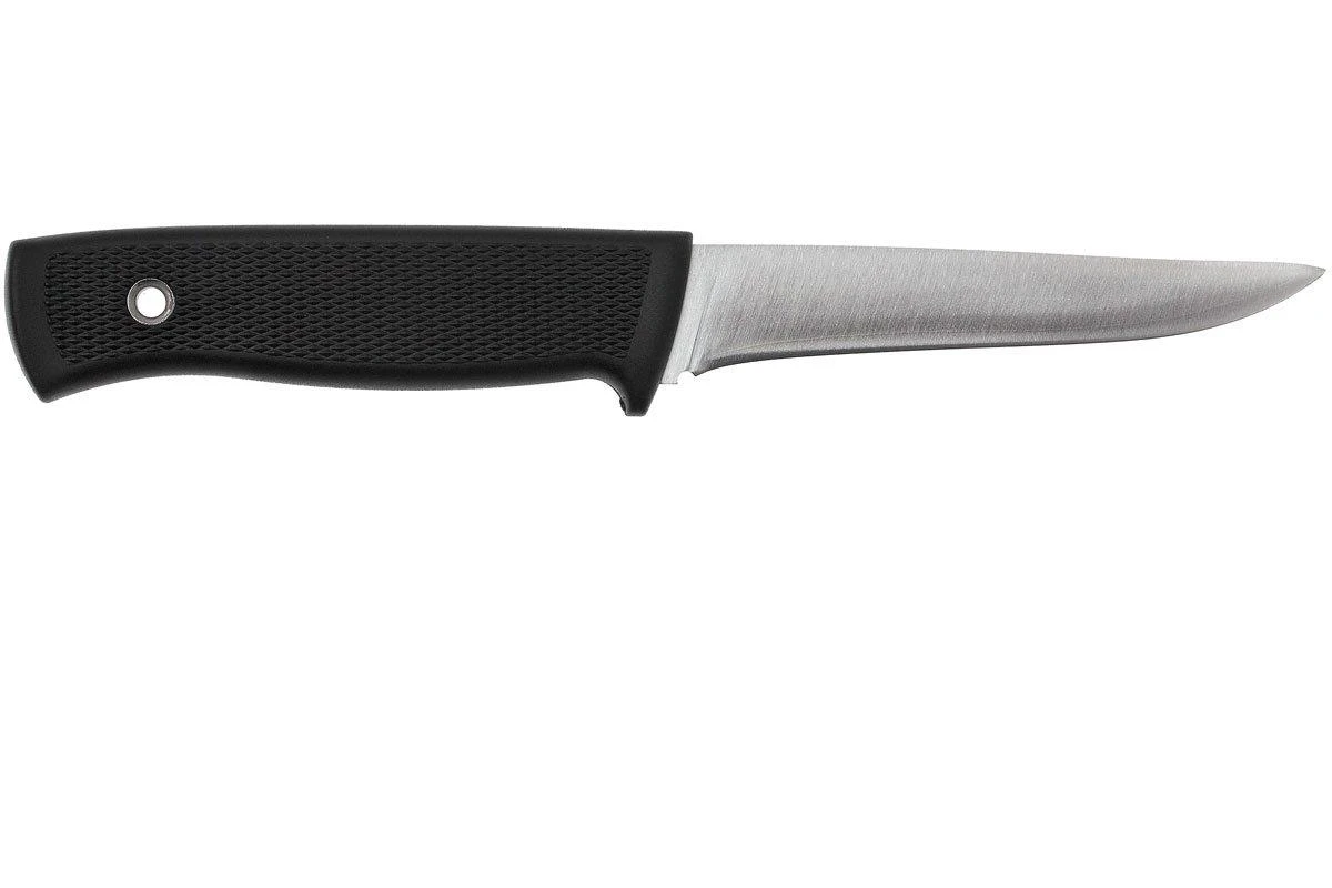 Ce modèle est tout simplement le meilleur et le plus fort couteau à poisson que nous avons jamais trouvé. Il a une lame en acier VG10, ce qui assure un tranchant de longue durée. La lame est étroite, mais assez épaisse et très forte. Le couteau est par excellence apte à la pêche, mais on peut également l’utiliser pour de nombreux autres usages. Le manche confortable et hygiénique, en kraton, a une bonne prise à main, même si vos mains sont humides ou grasses.