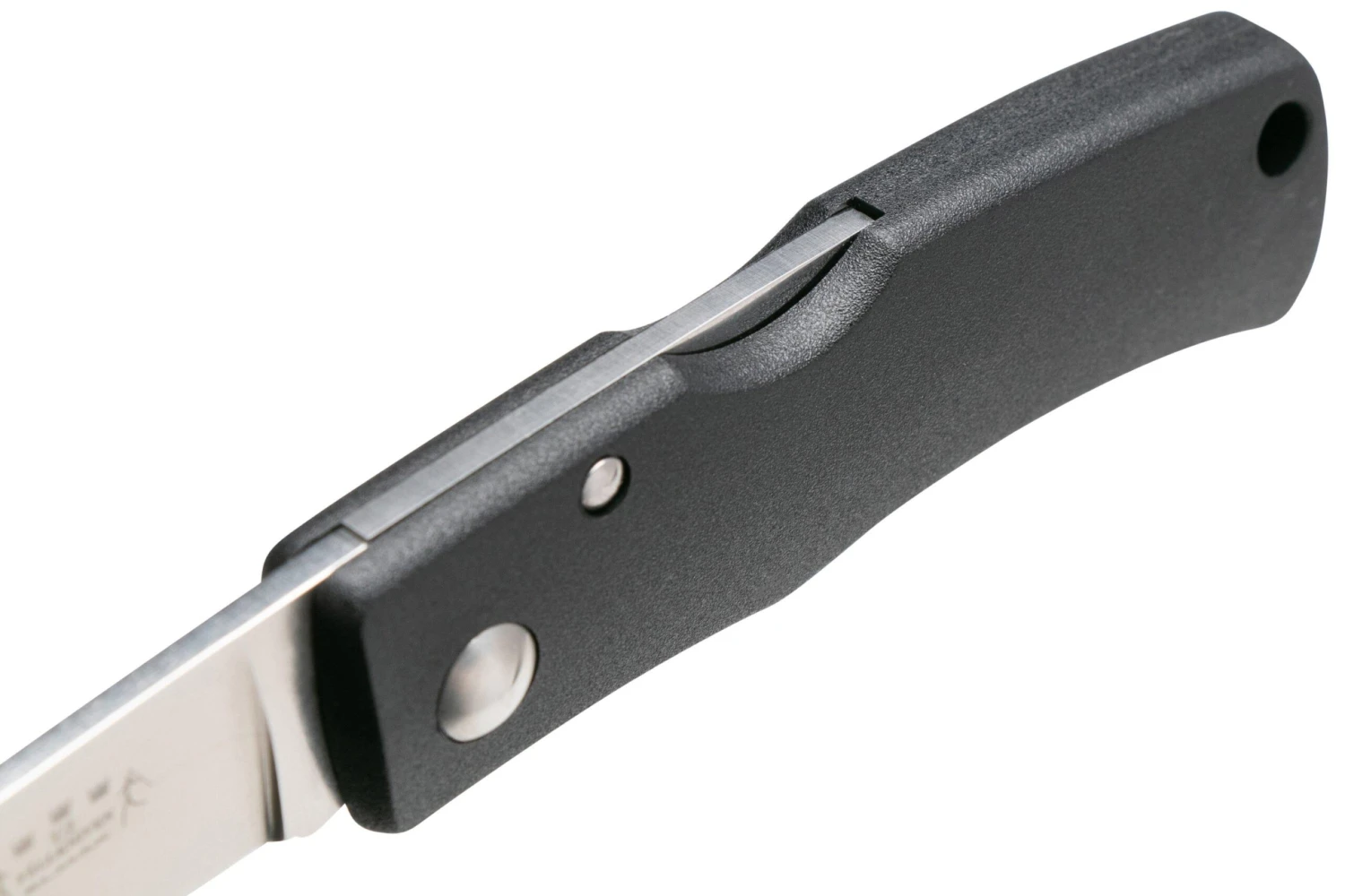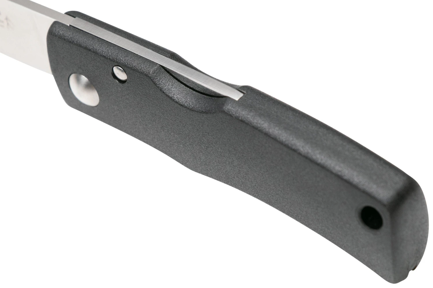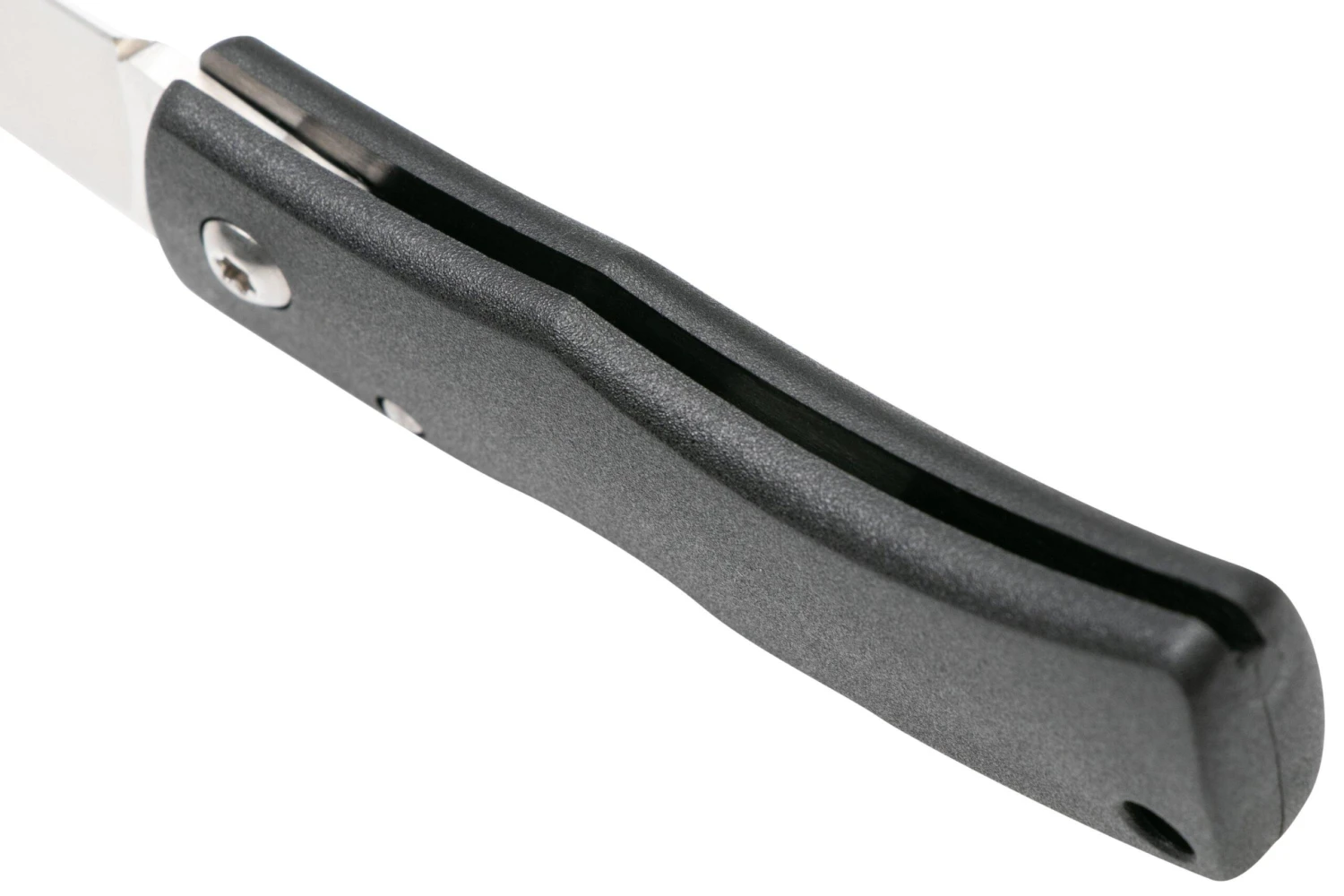 Le Fällkniven U2 Elmax est un couteau de poche slipjoint léger et de haute qualité. La lame est faite d’acier Elmax, un acier poudré suédois. Il est célèbre pour son excellente résistance à la rouille, sa bonne conservation du tranchant et sa facilité d’aiguisage. On ouvre le Fällkniven U2 Elmax à deux mains et un solide backlock maintient la lame en position ouverte. Le manche est en plastique composite extrêmement résistant appelé Grilon. Ce couteau est donc bien léger et est très confortable en main.