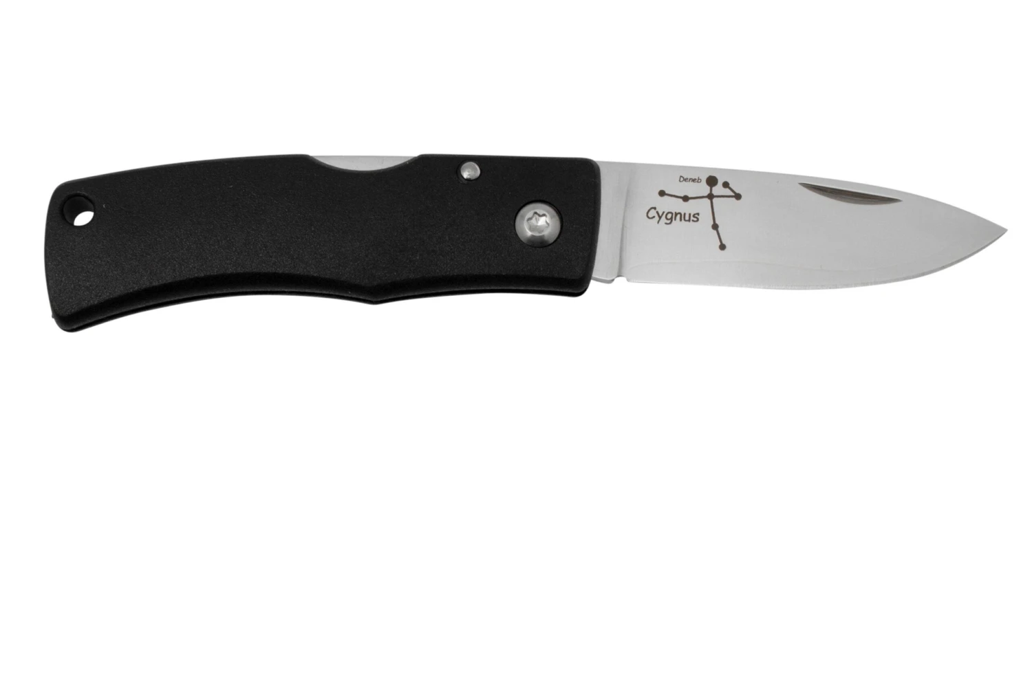 Le Fällkniven U2 est une édition spéciale de fameux couteau pliant léger. Cyngus est le mot en latin pour désigner un cygne. La constellation du cygne est gravée sur la lame. Un couteau de poche spécial aux yeux des collectionneurs, mais génial aussi à utiliser en tant que petit couteau EDC.