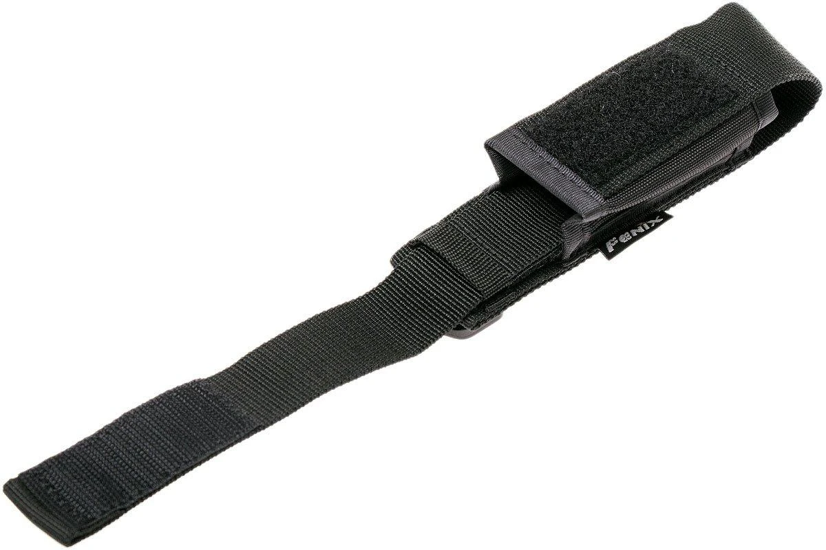 Le Fenix SH6 est un étui pour pouvoir transporter votre lampe de poche Fenix à votre ceinture. Il permet également de protéger votre lampe si vous la rangez dans un sac. Il peut accueillir différents modèles, dont les Fenix TK09/TK12/TK15/TK16/TK20. Il s’agit de lampes fonctionnant avec un accu 18650 avec une tête de 34 mm (environ). Ce qui est pratique, c’est que le rabat qui maintient la lampe dans l’étui est réglable en longueur. Grâce à la bande Velcro, réglez-le pour convenir à des lampes de différentes longueurs. Vous pouvez ainsi y ranger des lampes de 12,5 cm à 18 cm environ.