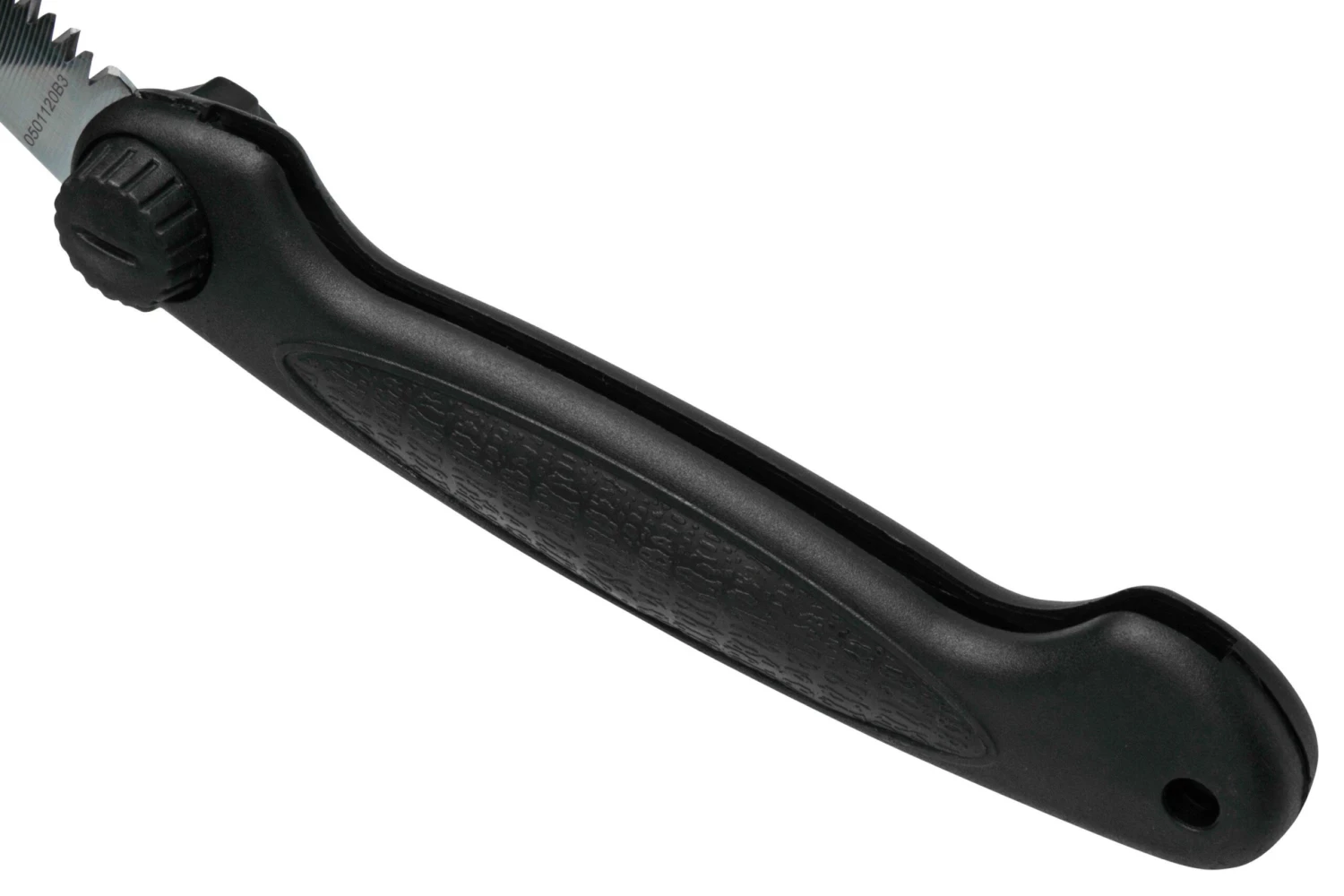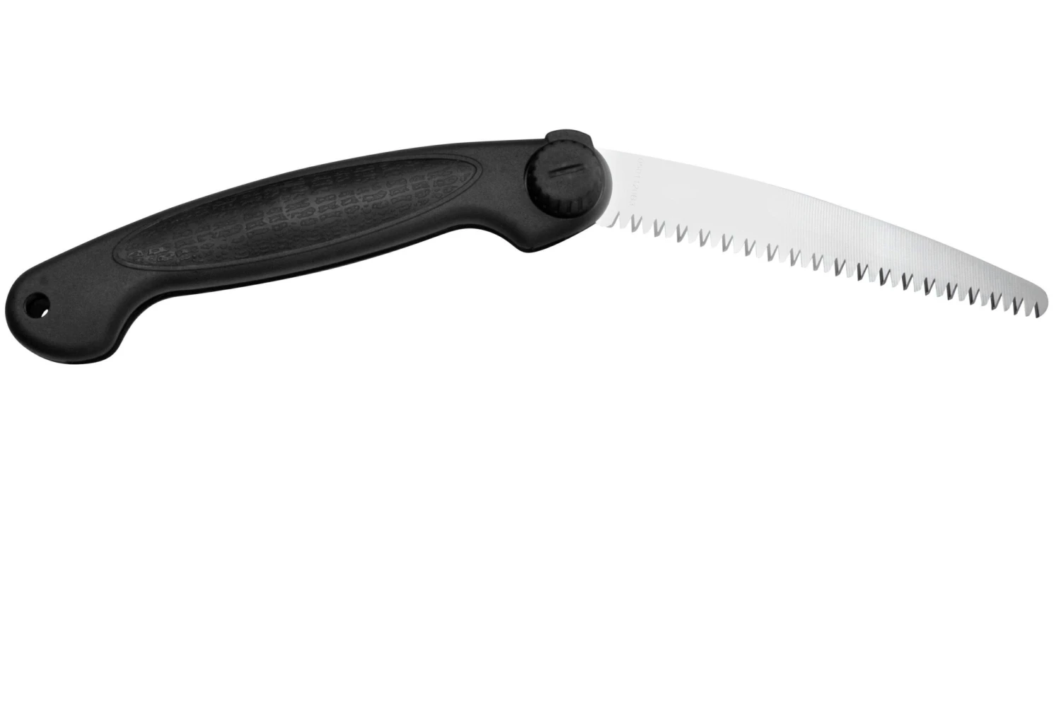 La scie Gerber Exchange-A-Blade est une scie simple sur laquelle on peut facilement remplacer la lame. Il suffit de dévisser la vis latérale, de retirer la lame et de la remplacer par une nouvelle, puis de revisser le tout. L’Exchange-A-Blade est dotée d’un bouton de verrouillage, qui empêche la scie de s’ouvrir ou de se fermer par accident. La scie est livrée avec une lame de scie fine et une plus grossière, et un fourreau simple en nylon.