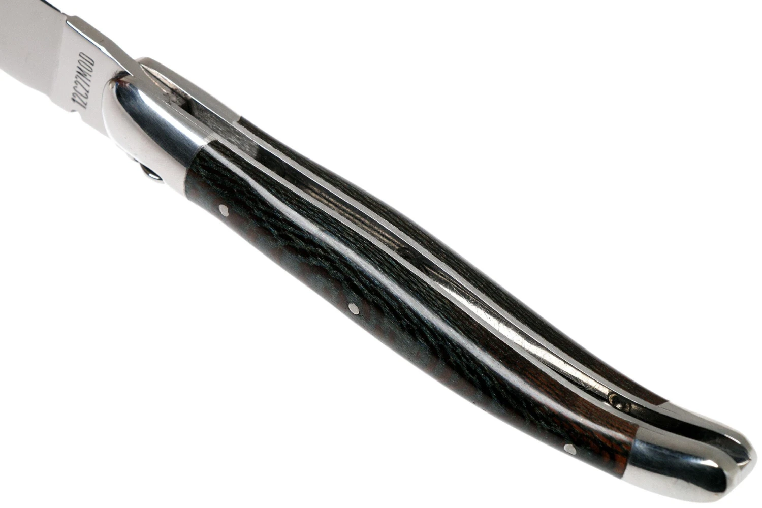 Ce couteau de poche Laguiole en Aubrac 12cm classic est un couteau Laguiole de la vieille école. Le dos du manche est finement guilloché à la main. La lame est en acier Sandvik 12C27MOD, résistant à la corrosion. Les mitres et la lame ont une finition légèrement mate. Le couteau sera donc moins marqué par les traces de doigts. Le manche présente la croix du berger typique des couteaux Laguiole.