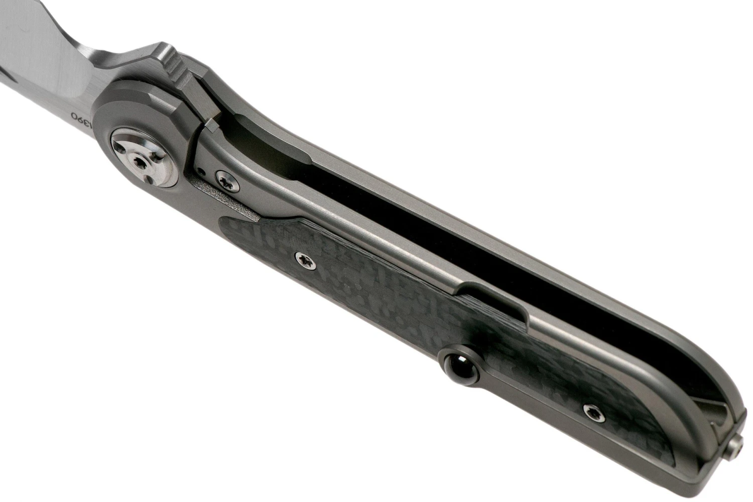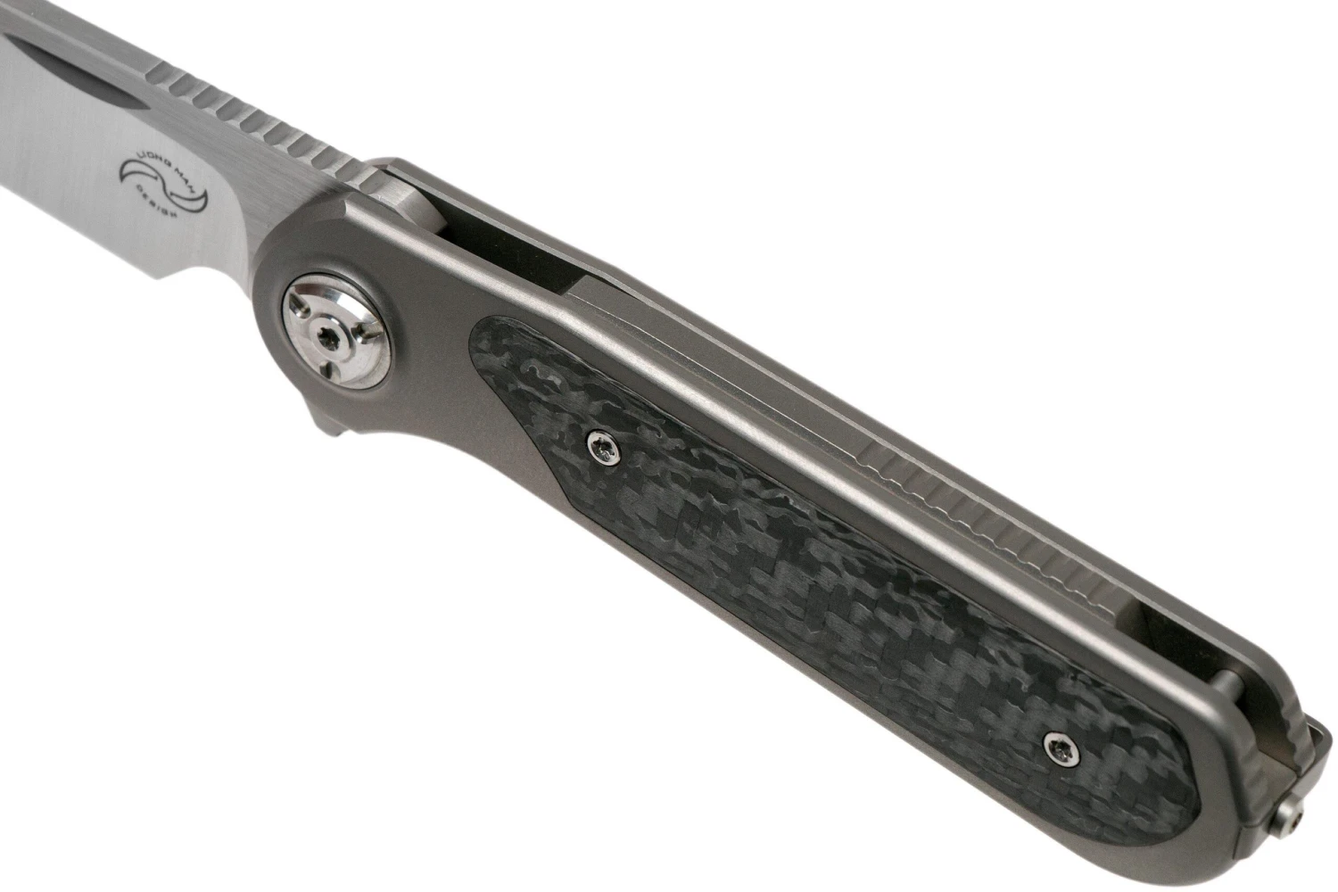 Le Liong Mah Zulu est un couteau de poche EDC pratique et compact. Ses formes sont inspirĂ©es d’un slipjoint classique. Cela se voit bien avec la surface en titane devant les parties de la poignĂ©e en fibre de carbone autour du pivot. Cette partie ressemble Ă une mitre, comme on en trouve sur les couteaux traditionnels. C’est une belle prouesse.