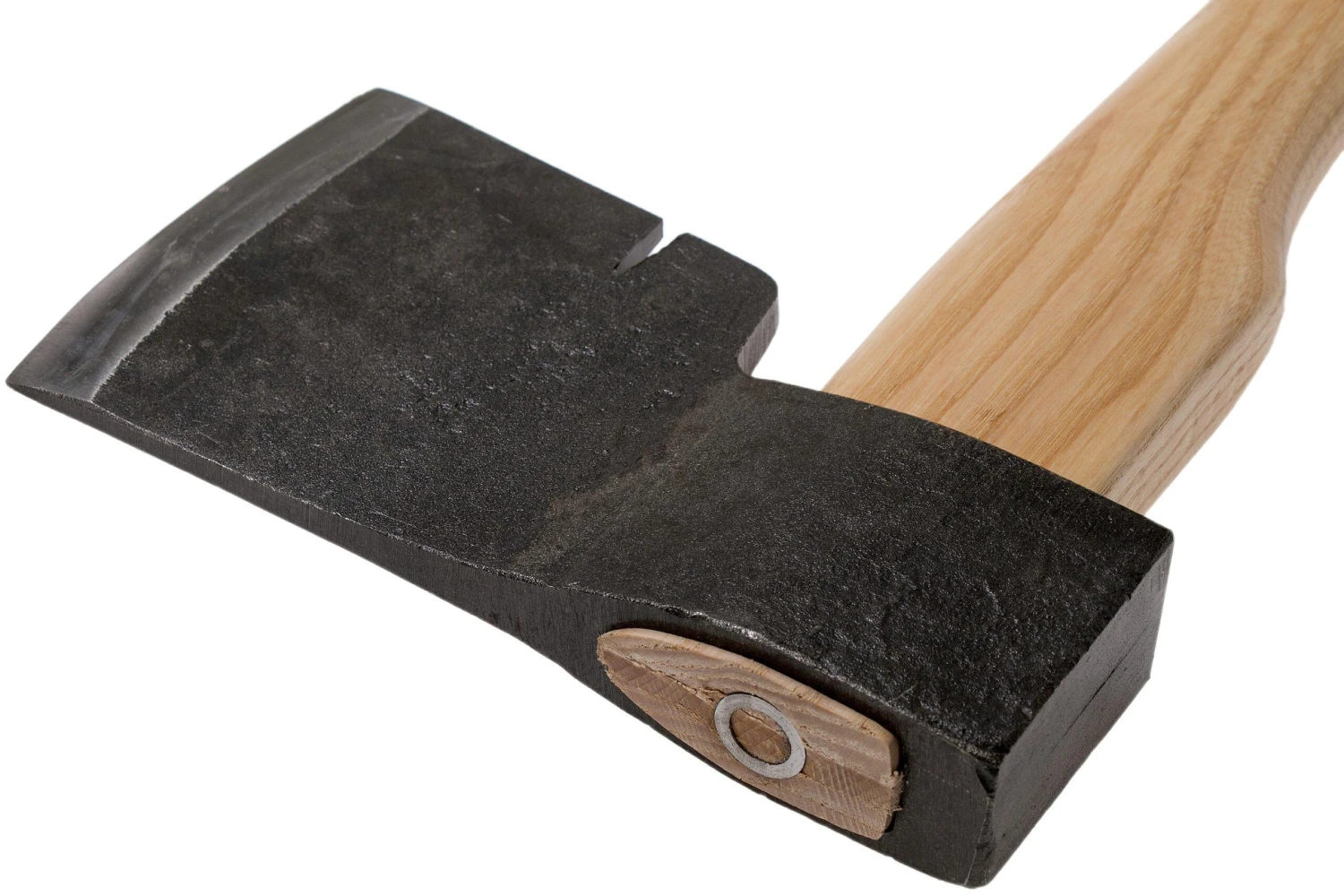 La hache de charpentier Müller Kurth possède une tête renforcée et une solide tige en bois de frêne. La tête de hache pèse 1500 grammes, un poids idéal pour enfoncer des clous. La partie inférieure de la tête de la hache comporte une encoche pour retirer les clous.