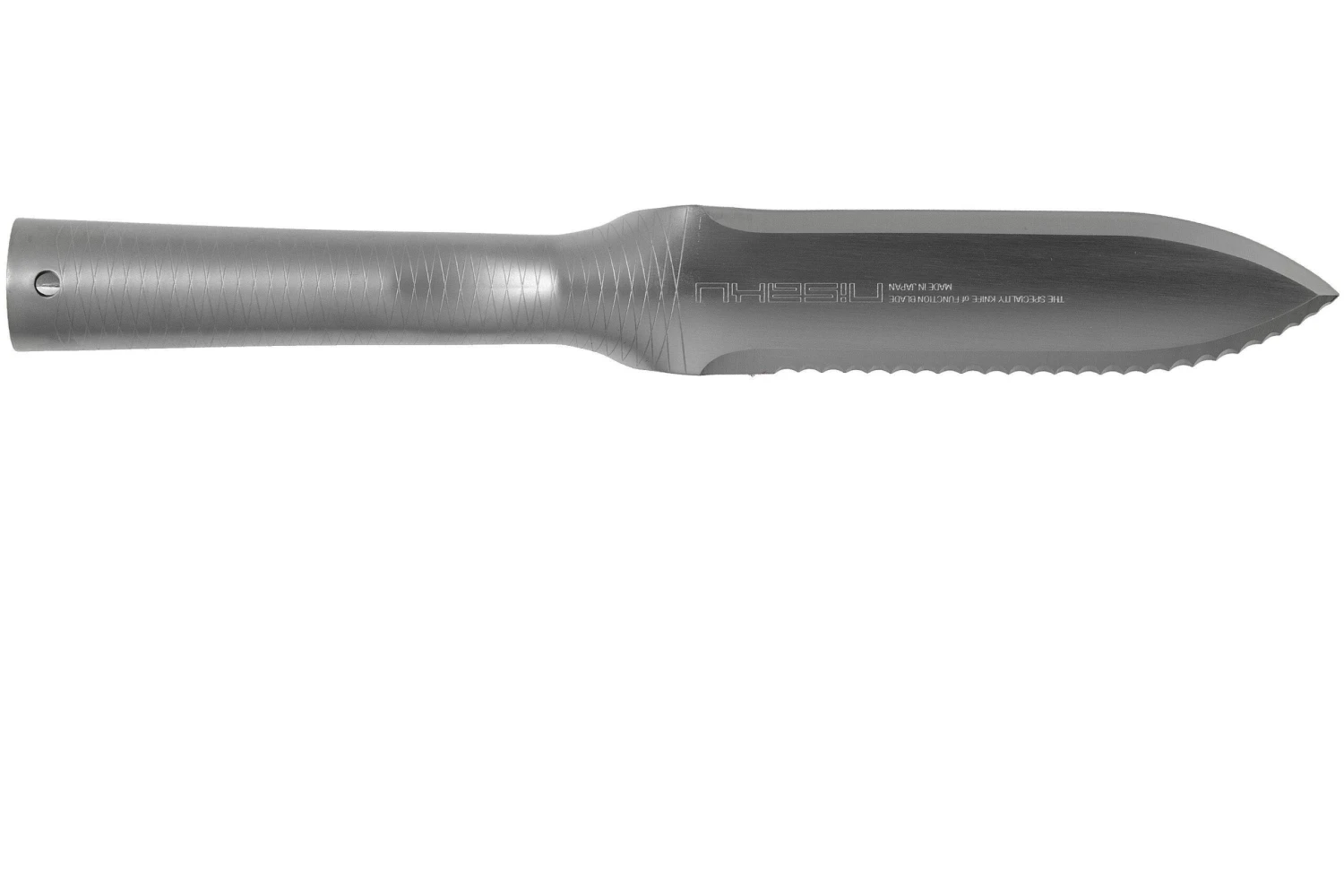 Le Nisaku Hori Hori 6800 est un couteau de jardin luxueux, fait d’une pièce en acier inoxydable, selon la tradition Japonaise. L’avantage de cette construction de couteau est sa solidité. La lame en acier inoxydable garde son tranchant longtemps et n’est pas trop sensible à la corrosion. La poignée est décorée de rayures en croisillons qui améliorent sa prise en main. Ce manche étant assez gros, ce n’est pas le choix idéal pour les petites mains. L’Hori Hori 6800 est livré avec son fourreau luxueux en cuir.
