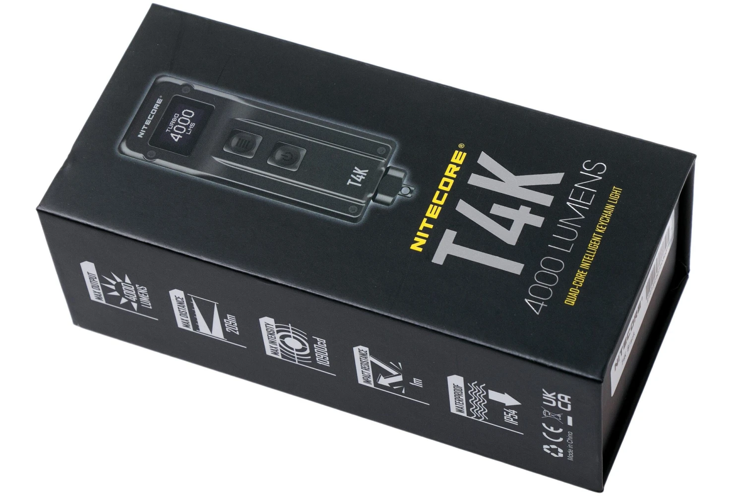 La Nitecore T4K est une lampe porte-clés avec une puissance de 4000 lumens. Extrêmement puissant pour une si petite lampe ! Au dos de la lampe, un anneau en métal sert à l’attacher et peut supporter un poids allant jusqu’à 30 kg. En plus, la lampe est munie d’un système de refroidissement innovant qui va rapidement dissiper la chaleur.