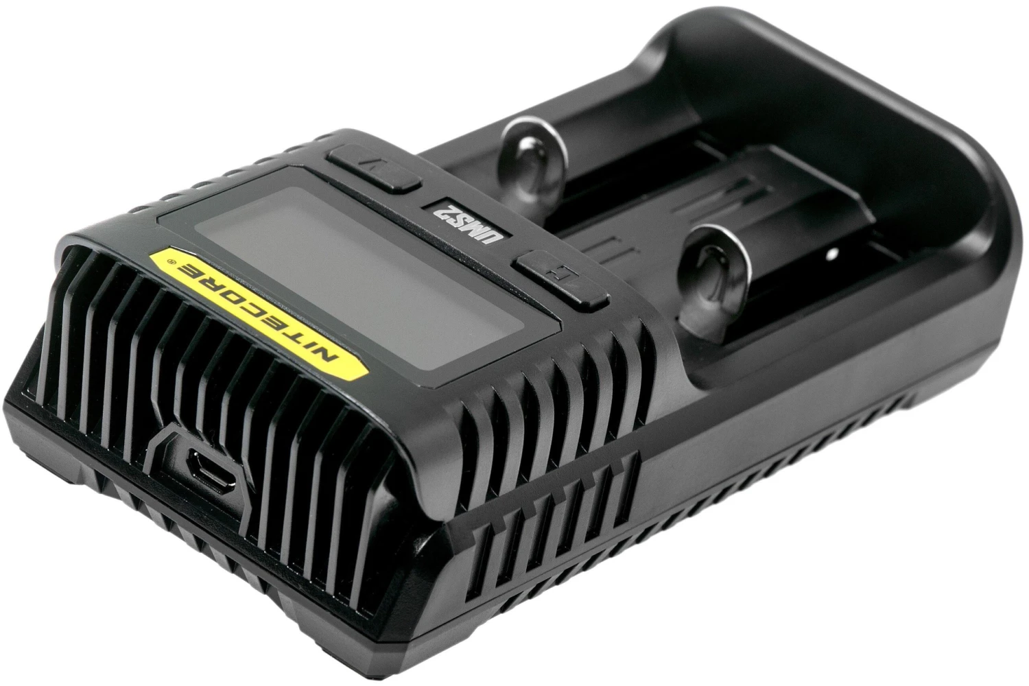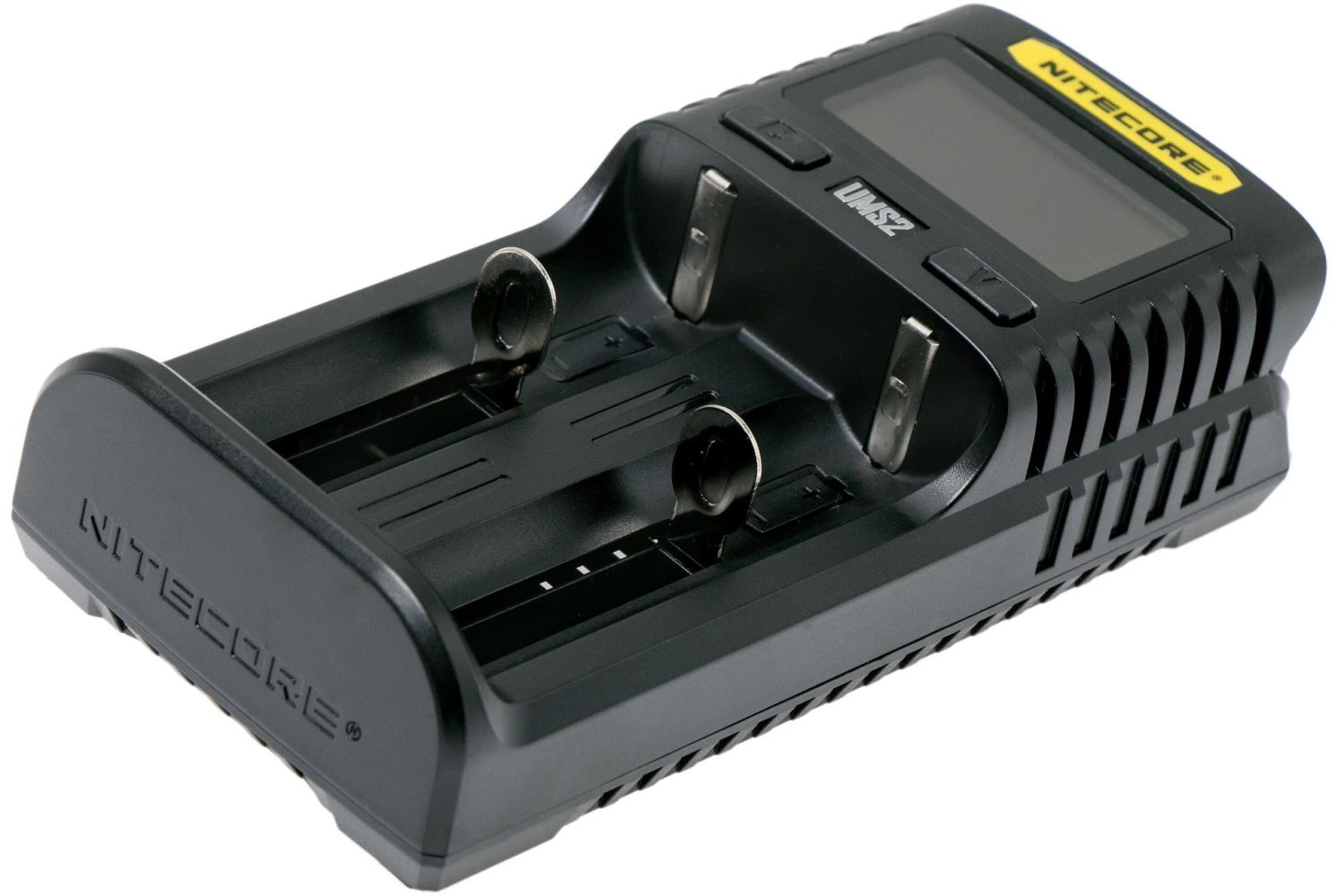 Le NiteCore UMS2 intelligent USB Dual-Slot Superb Charger est un chargeur d’accu intelligent compatible avec de nombreux types d’accus. Pratique lorsque vous ne souhaitez avoir qu’un seul chargeur. Le UMS2 reconnaît automatiquement le type d’accus que vous insérez afin d’ajuster le cycle de charge, que ce soit un accu Li-Ion, IMR, Mi-MH ou Ni-CD. L’écran intégré vous permet de suivre le processus de chargement. Pour éviter la surcharge, le chargeur s’éteint complètement lorsque tous les accus sont chargés. L’écran LCD montre les informations en temps réel.