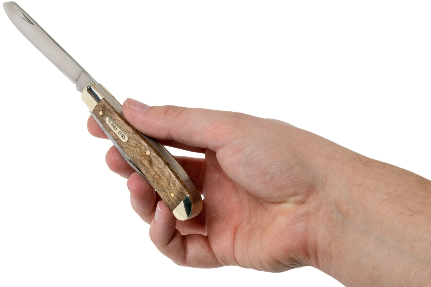 Le Old Timer Gunstock Trapper 94OTW est un couteau de poche slipjoint à prix abordable avec manche en polymère. Un couteau traditionnel compact avec deux lames : clippoint et spey. On ouvre les lames à deux mains et un slipjoint permet de les maintenir ouvertes. Ce n’est pas un verrouillage à proprement parler. On peut donc le porter légalement dans de nombreux pays dans le monde entier.