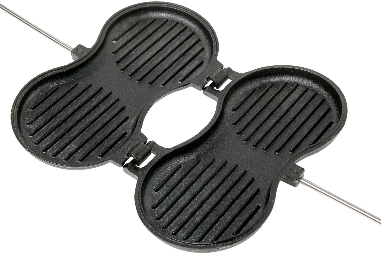 Avec cet appareil à hamburger de Petromax, vous pouvez cuisiner les meilleurs burgers sur le feu. Vous préparez les steaks hachés dans les casseroles en fonte pour ensuite les placer sur le feu. Les carreaux peuvent être séparés au moyen d’une charnière. Le manche en bois est très confortable et sa longueur assure une distance suffisante par rapport à la source de chaleur. La fonte peut être utilisée immédiatement et n’a pas besoin d’être brûlée.