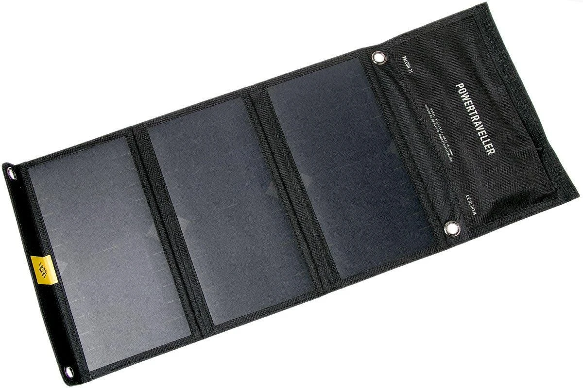 Le Powertraveller Falcon 21 est un panneau solaire pliant léger. Idéal pour recharger tous vos appareils mobiles : laptops, tablettes, smartphones, Go-pro’s, powerbanks et montres intelligentes. Le Falcon 21 peut, selon les conditions météo, générer environ 60 à 90 Wh par jour. Suffisamment pour recharger plusieurs fois un smartphone classique. On peut même stocker l’énergie. En couplant le panneau solaire à une powerbank. Ainsi, vous avez du courant même en cas de mauvais temps. Avec l’indicateur LED, on voit si peut ou beaucoup d’énergie a été générée.
