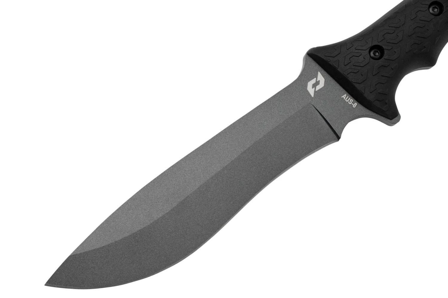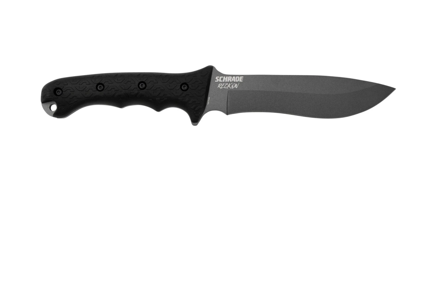 Le Schrade Reckon est un couteau de survie solide, Ă un très bon prix. L’association du manche noir et de la lame noire offre Ă ce couteau un look très brut. La texture du manche offre une bonne adhĂ©rence. MĂŞme par conditions humides.