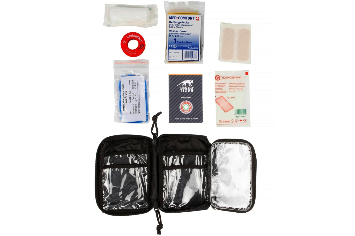 Ce Kit premiers secours Tasmanian Tiger comporte tout ce qu’il faut dans une trousse d’urgence pour en voyage. La pochette a une fermeture Éclair tout le long, et s’ouvre facilement. Ă€ l’arrière de la pochette, une boucle ceinture permet de porter la pochette horizontalement ou verticalement Ă son sac ou ceinture.