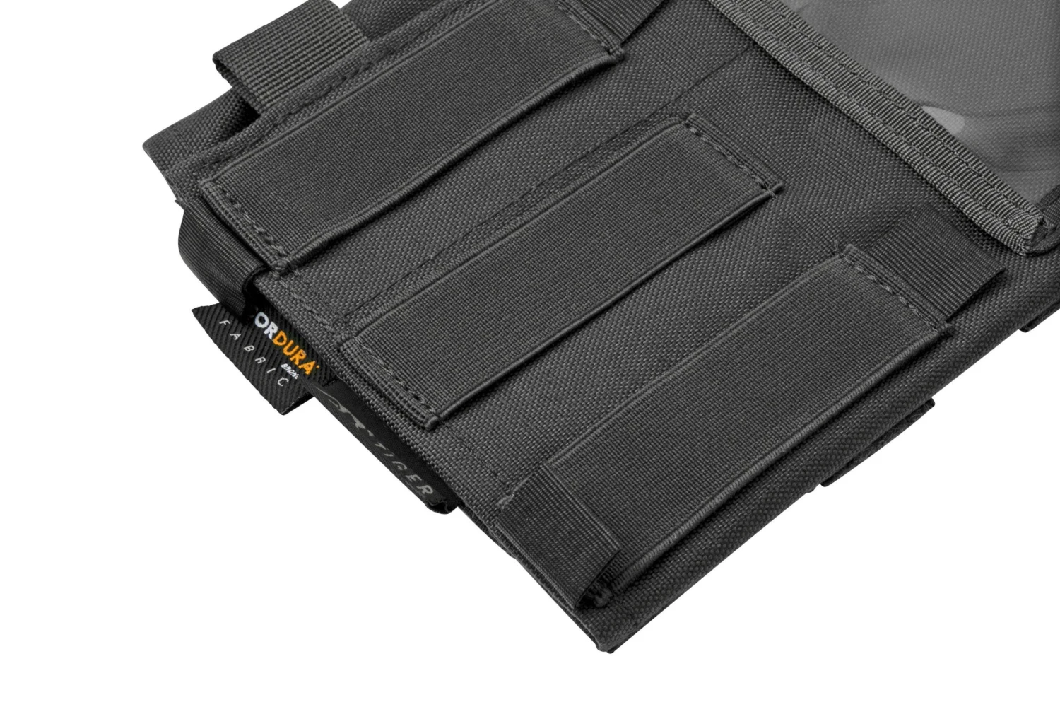 Cet organisateur pour pare-soleil Tasmanian Tiger transforme le pare-soleil de votre voiture en véritable pochette EDC. Sur l’une des faces de cet organisateur, vous trouverez un filet MOLLE pour y attacher par exemple une lampe de poche, ou un stylo tactique. La pochette transparente est parfaite pour les cartes, tickets de parking, etc. L’autre face dispose d’un système MOLLE avec bande Velcro. La pochette est faite en solide Cordura® 700 deniers. Cet organisateur de pare-soleil est compatible avec la plupart des pare-soleils d’une dimension d’environ 29 à 37 cm.