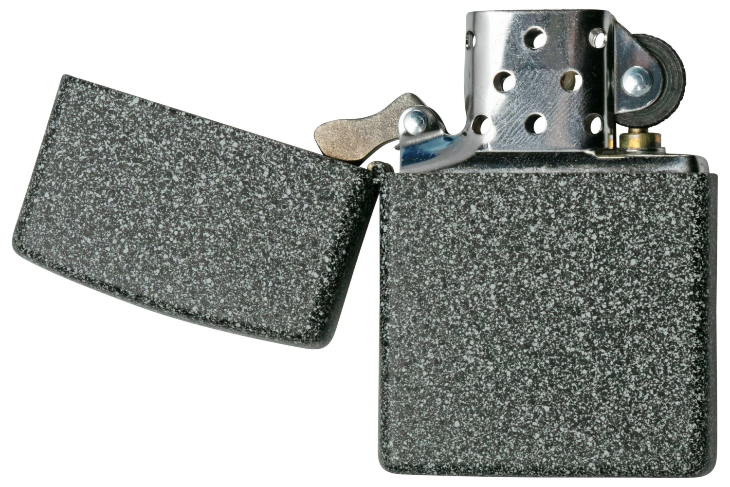 Ce briquet Zippo Iron Stone est noir et blanc, et ressemble à une pierre. Il est tout lisse.